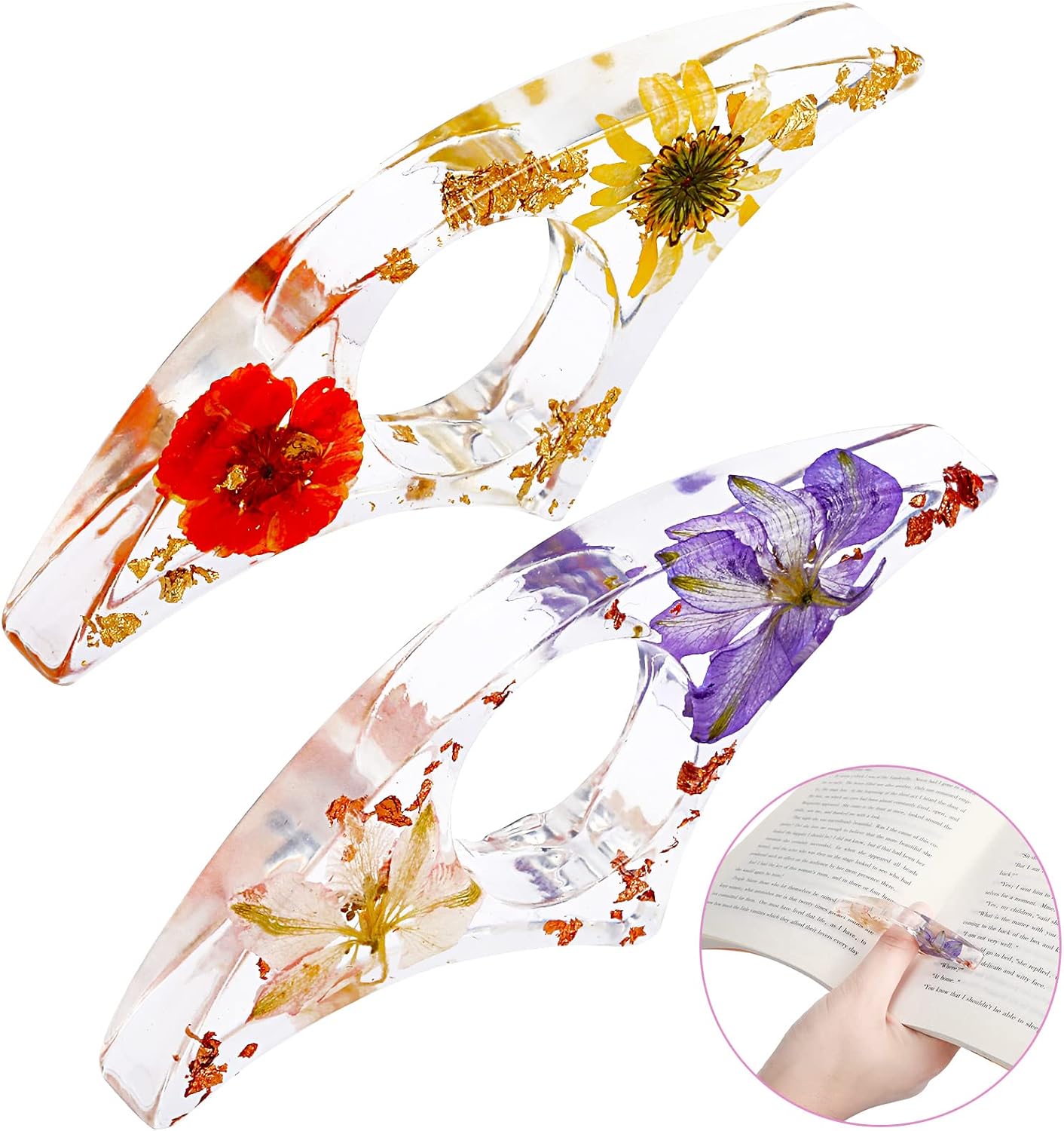 You will get 2 different kinds of resin flower reading rings, which can be acted as a good reading companion for book lovers, teachers, students, librarians, nerds, writers and so on; thus people can read books more easily and conveniently.