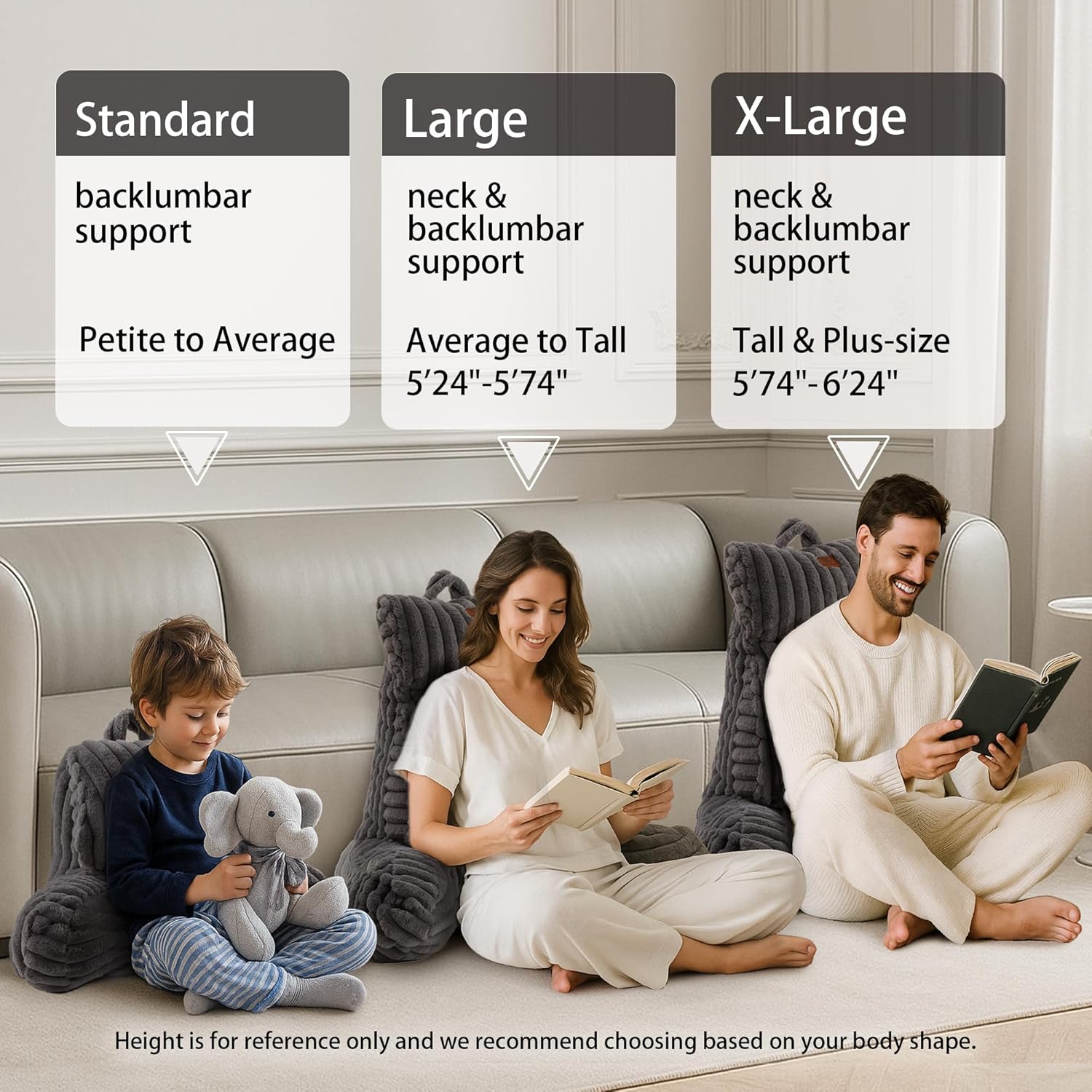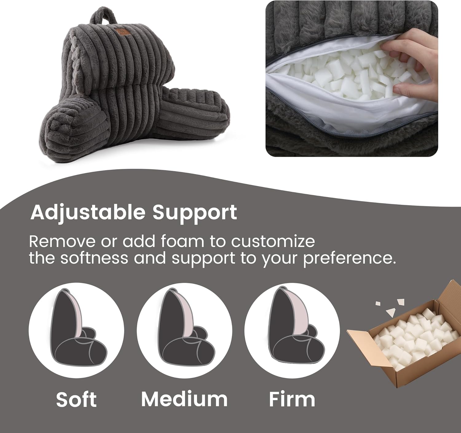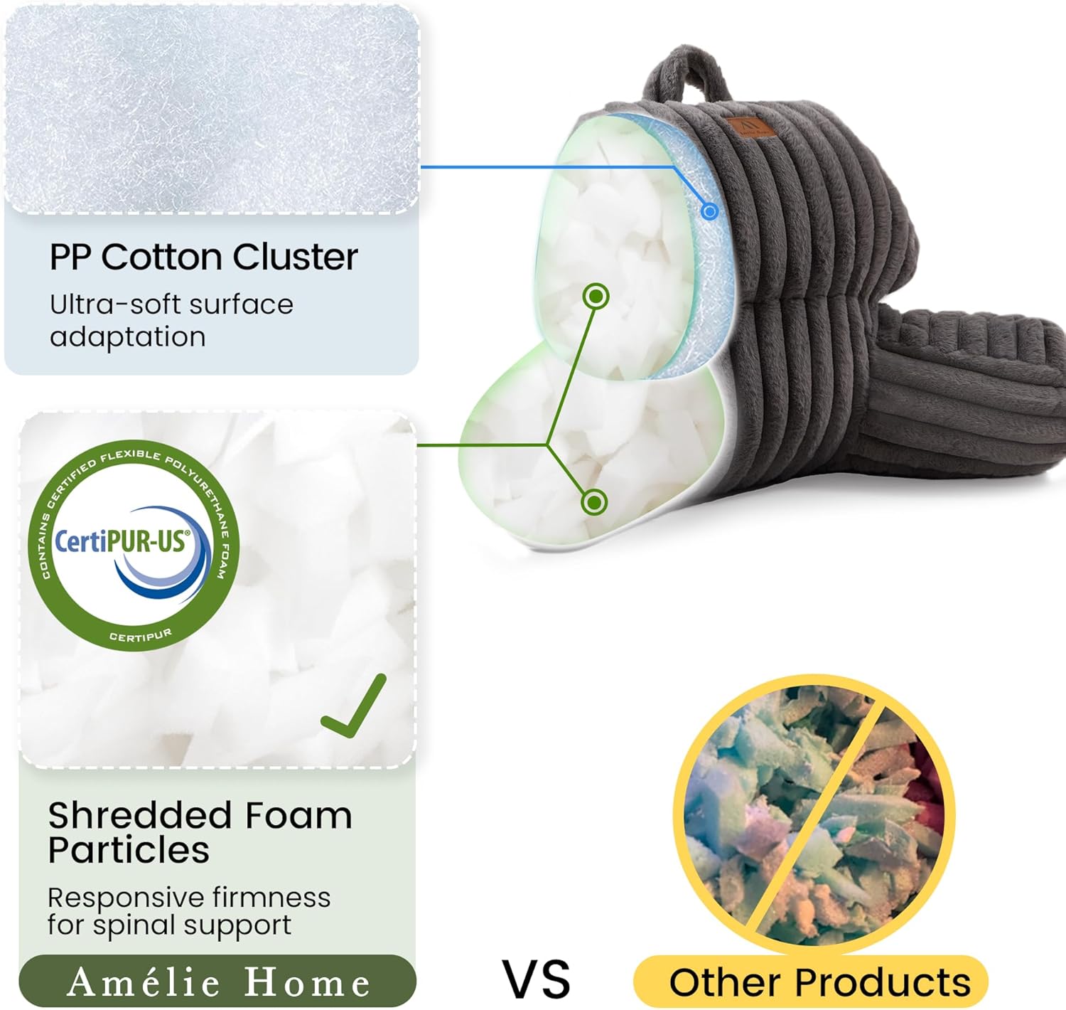 Combines ultra-soft PP cotton and resilient shredded foam for firm, non-sagging back support. Ideal for reading in bed, gaming, or lounging on the couch to help reduce spinal pressure.