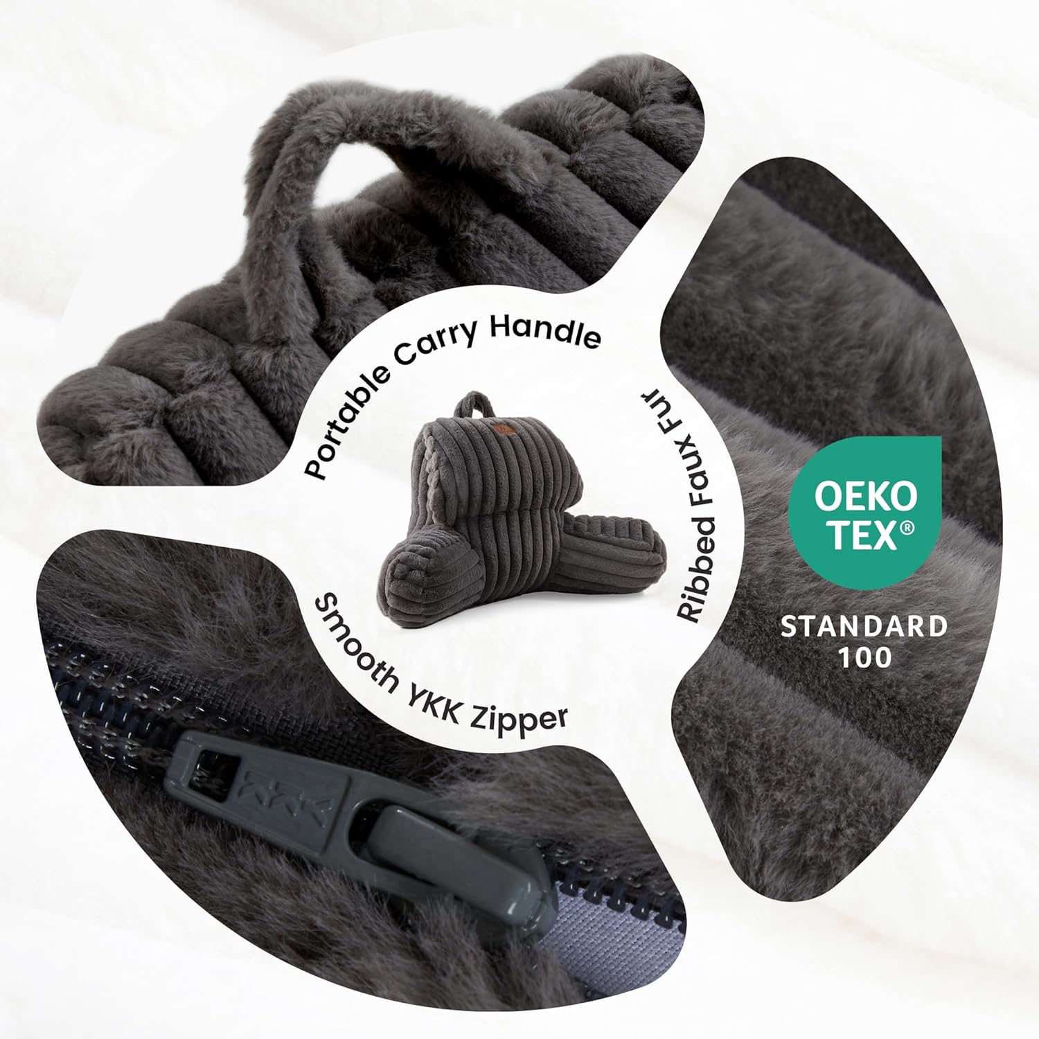 Wrapped in elegant, faux rabbit fur with a vertical ribbed texture. Its gentle, skin-friendly surface is perfect for cozy evenings and upgrading your lounging game.