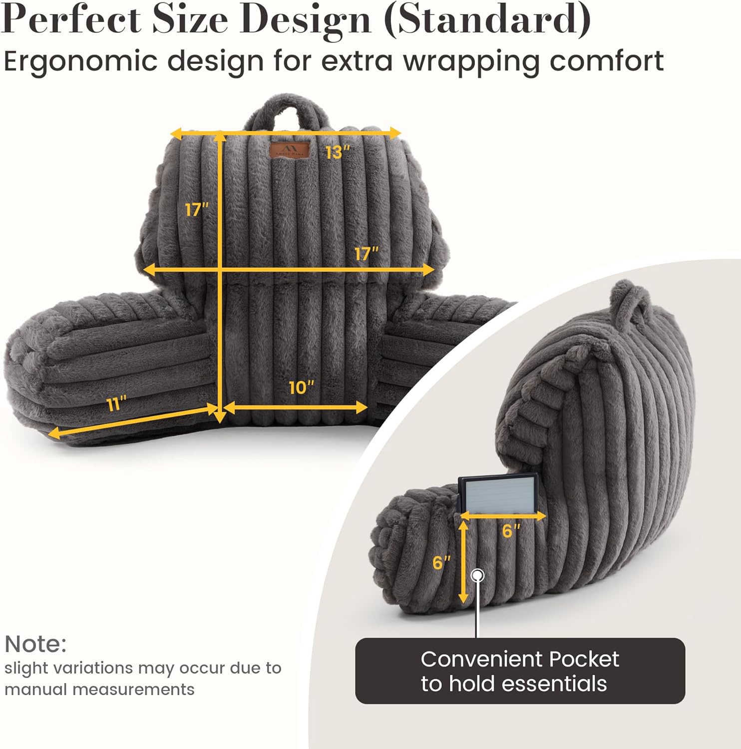 Enjoy cozy support with the Amélie Home Faux Fur Reading Pillow, designed for comfortable sitting in bed