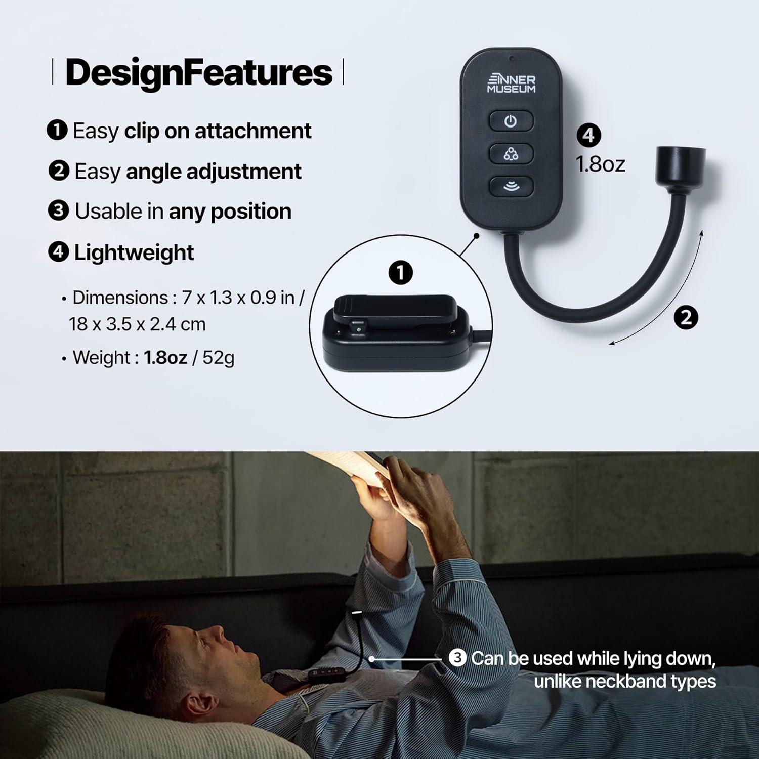 Weighing only 1.8oz, this small clip on book light is easy to carry anywhere. Its ultra light design makes it perfect for reading in bed, commuting, or fitting easily in your bag.