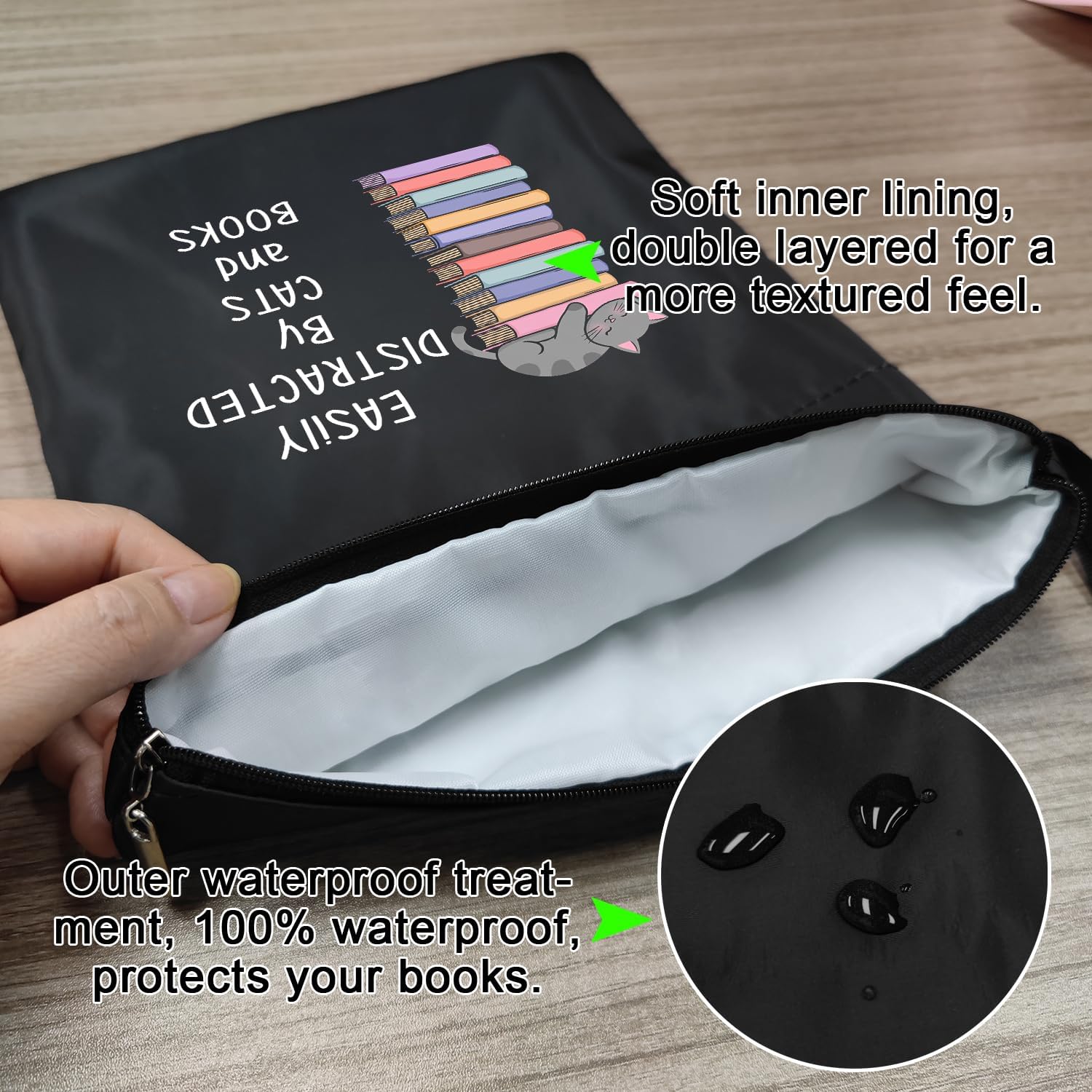 The book sleeve is made of polyester, fabric waterproofing, hand and machine washable for repeated use.