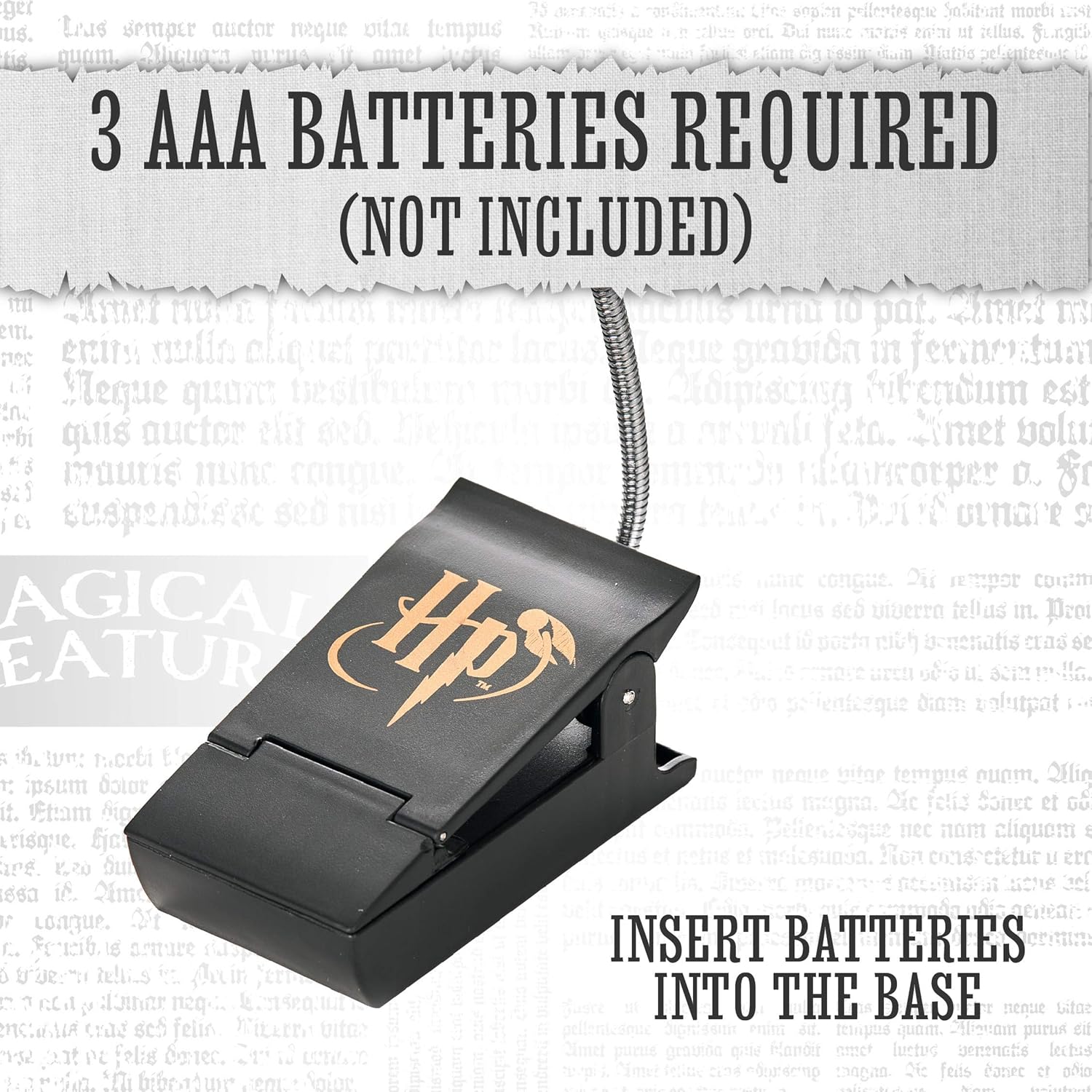 Dual-powered by either batteries or USB (USB cable included, 3 x AAA batteries not included), The golden Snitch clip light is perfect for late night reading, or an ideal travel accessory for Potter Mad bookworms.
