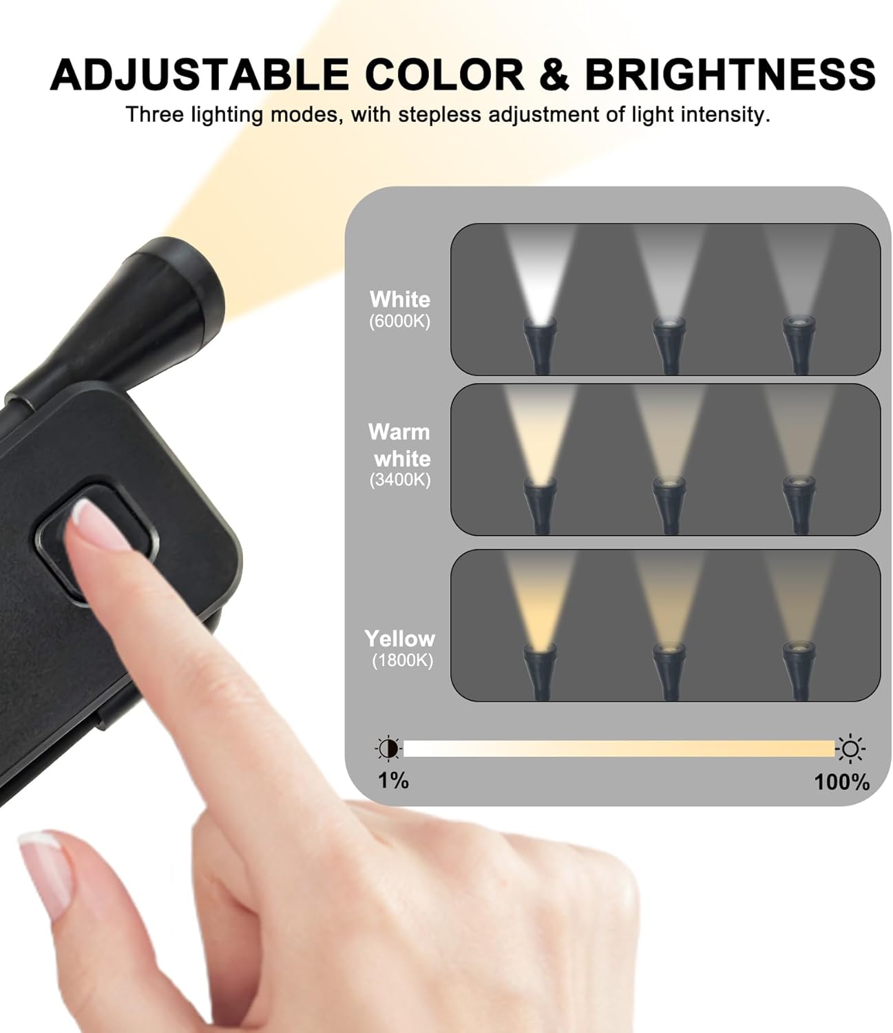 Tailored illumination with 3 color temperatures: Warm (3000K), White (6000K), and Warm White (4500K). Unlike others with fixed levels, our stepless dimming allows you to fine-tune the perfect brightness for knitting, reading in bed, or repair work. The flicker-free, blue-light-filtered LEDs prevent eye strain during long nighttime sessions.