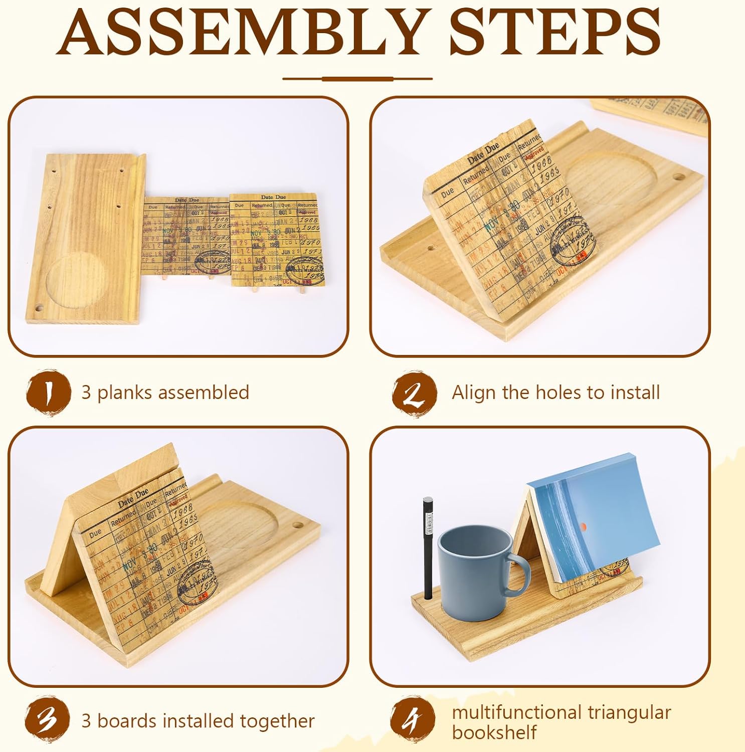 This Wooden Triangle Book Stand with Drink Holder is the ultimate companion for book lovers!