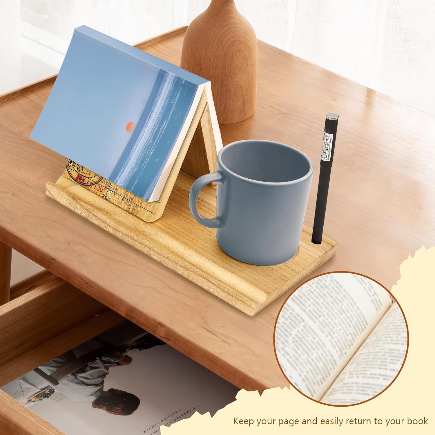 Our book page holder is made from high-quality, sustainable paulownia wood, this book stand for reading provides a sturdy and compact structure while maintaining its natural and rustic aesthetic appeal. The natural grain and warm tones of the wood create a cozy and inviting atmosphere, making it a perfect addition to your home, office, or study.