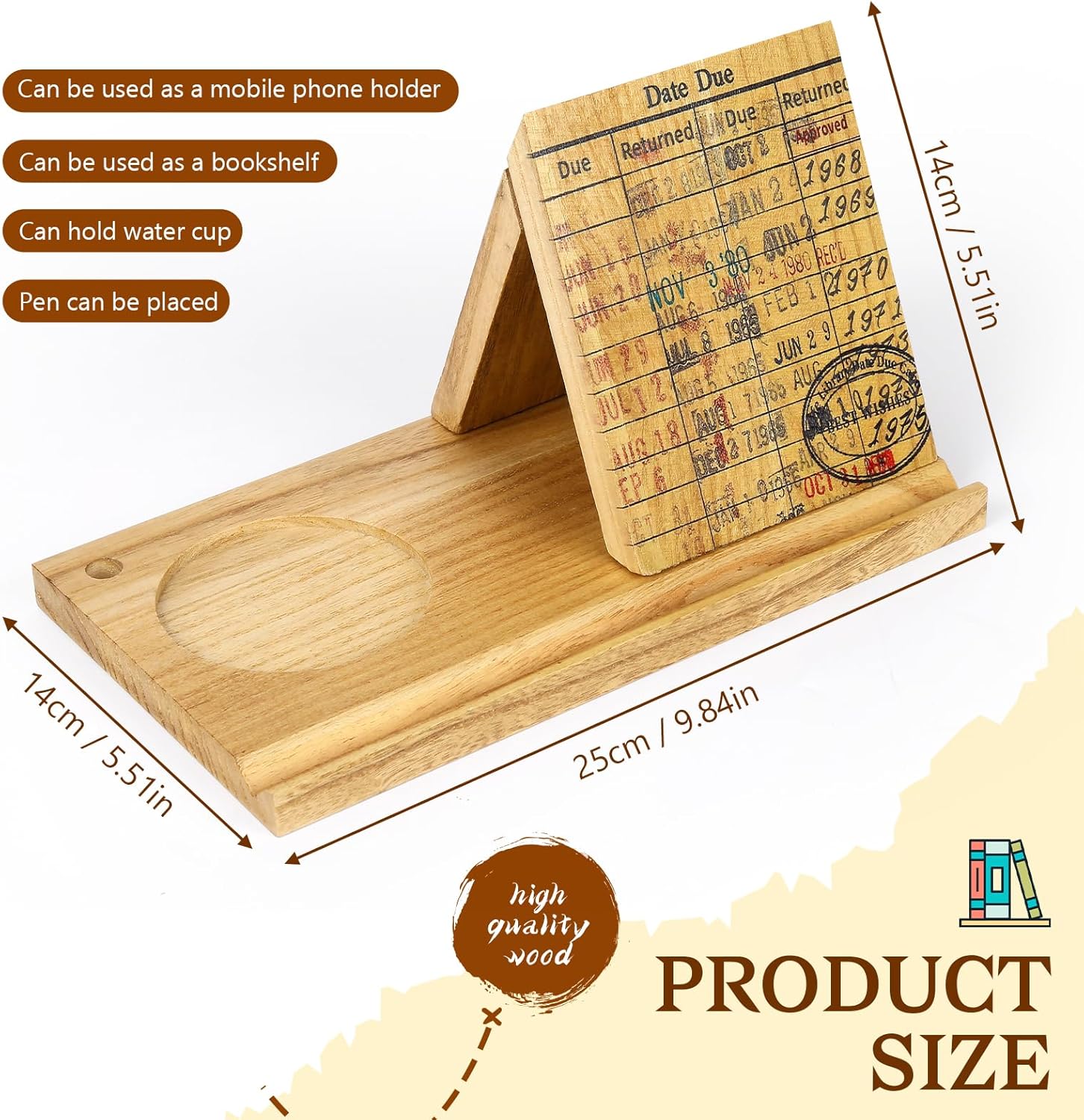 Time is gone forever, but the books you read will be remembered in your mind. We applied our original vintage library due date card design on this wooden triangle bookmarks. This unique book holder takes you back to the 60’s/70’s/80’s, do you remember when you were borrowing books from the library? Bring your memories back to those good old days with these Library Due Date Card Book Holder.